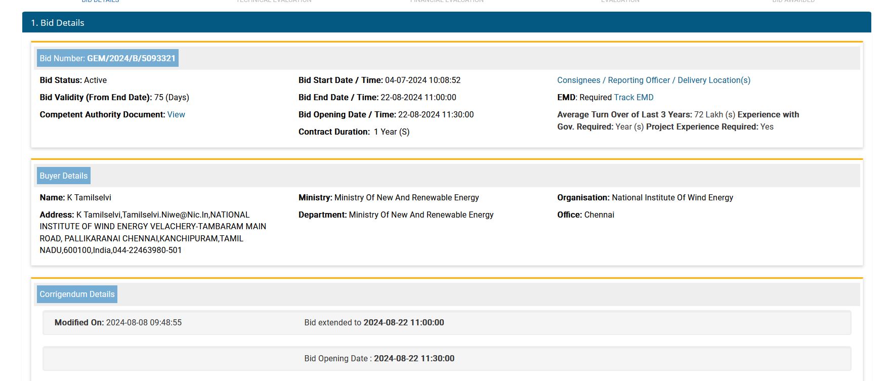 Bid Document for "100 M met Mast Dismantling Civil foundation erection Operation and Maintenance at various locations "