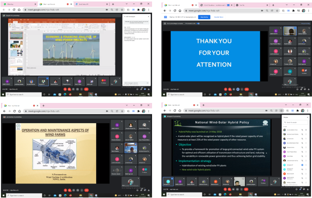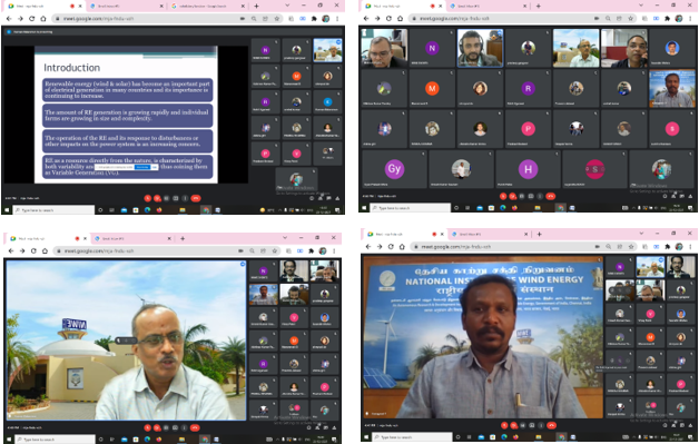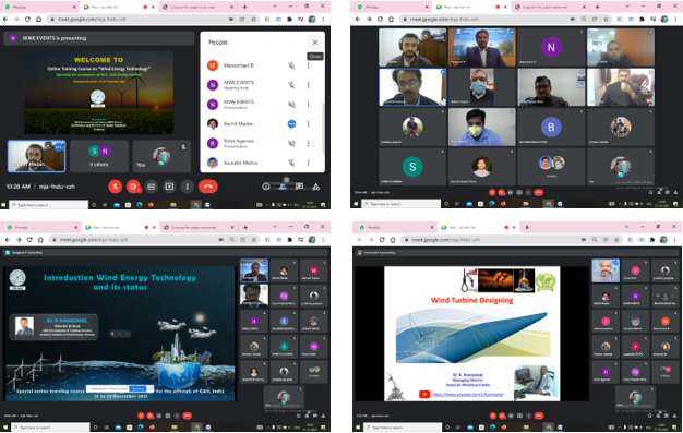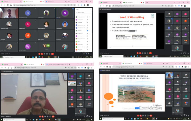 The Skill Development & Training, Infrastructure Management (SDT & IM) Division of NIWE has successfully conducted the Online Customized Training Course on "Wind Turbine Technology" during 21st – 23rd December 2021. The course addressed all aspects of Wind Power starting from introduction to wind and its technology, wind resource assessment, installation and commissioning, Grid integration, operation and maintenance of wind farms, financial and policy aspects along with testing and certification of wind turbines. The course was attended by 25 participants. During the 3 days of course, 12 lectures were scheduled. The course content of the training were handled by Scientists, Engineers of NIWE, wind turbine manufacturers and academicians from premier institutions, who have many years of experience in the field.