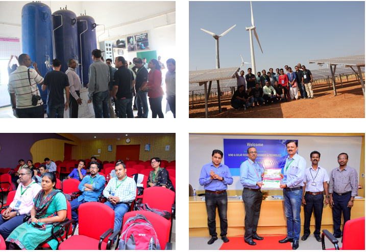 Besides the class room lectures, practical sessions were also arranged in NIWE laboratories and study visit to Renewable energy facilities were made available in the NIWE campus; and field visit to Wind Turbine Test Station / Wind Turbine Research Station, Kayathar for giving exposure on small and large wind turbine testing process, practical knowledge on working wind turbines apart from visiting wind farms in and around Kayathar / Kanyakumari.