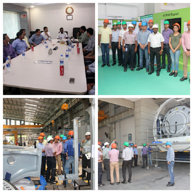 The participants were taken to visit M/s. Gamesa Large Wind Turbine Manufacturing Facility at Mamandur, Chennai, where they had a chance of seeing all the components of wind turbine and the experts trainers explained the working principle of the components along with the troubleshooting techniques.