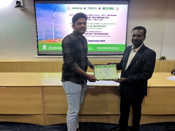 The Skill Development and Training Division of NIWE had successfully conducted the special training course on "WIND ENERGY TECHNOLOGY" for the officials of M/s. Nordex Engineering and Technology Pvt. Ltd. held during 15th to 17th September 2025. The program covered basics of wind and its concepts to resource assessment, project implementation, operations including wind-solar hybrid and offshore aspects. The training helped the participants to understand the important aspects in developing the economically viable wind farm projects. Forty officials participated in the course.