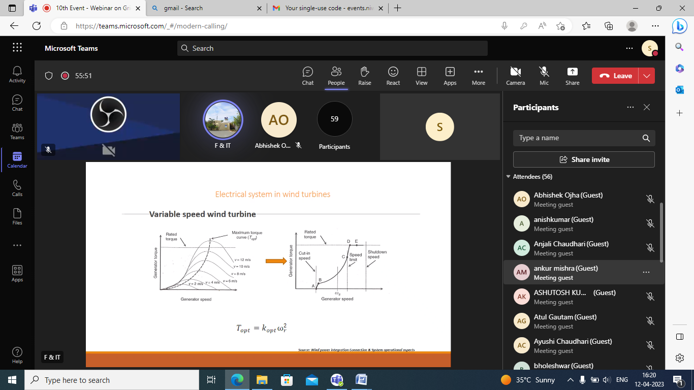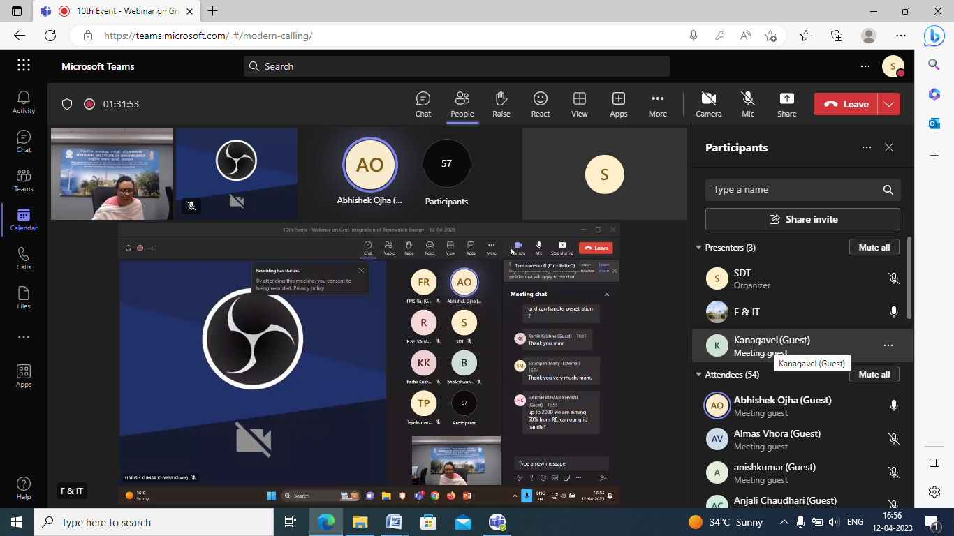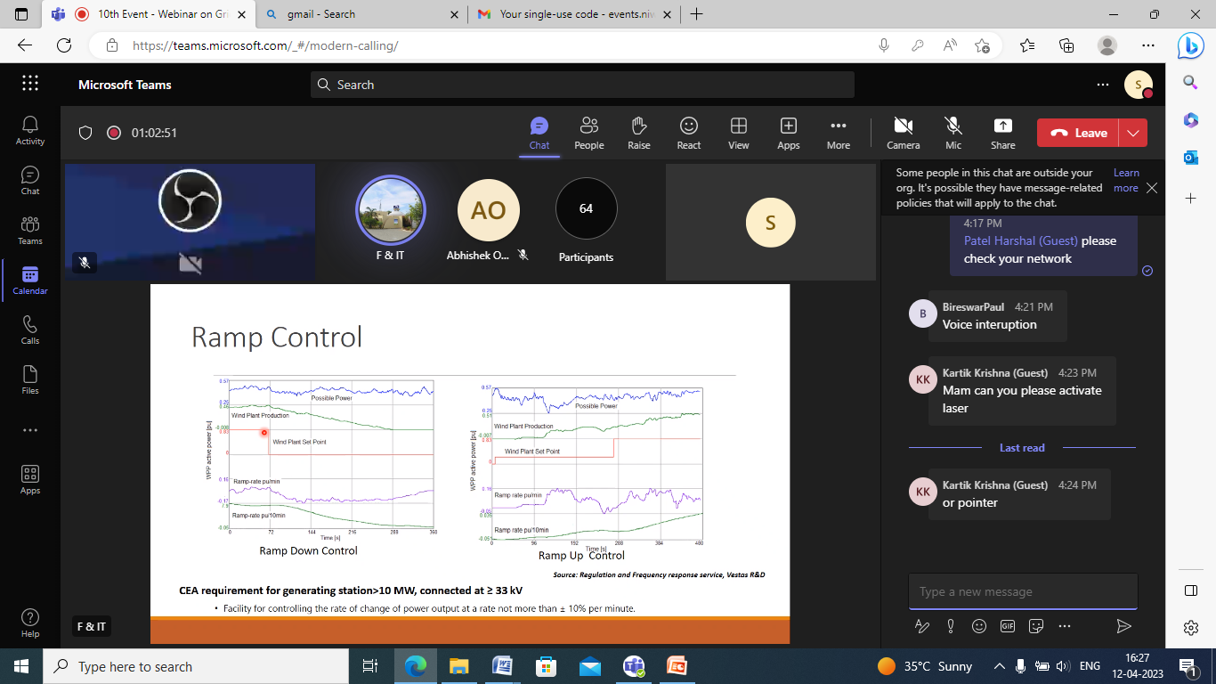 The tenth event, “Webinar on Grid Integration of Renewable Energy” was successfully conducted on 12th April 2023.