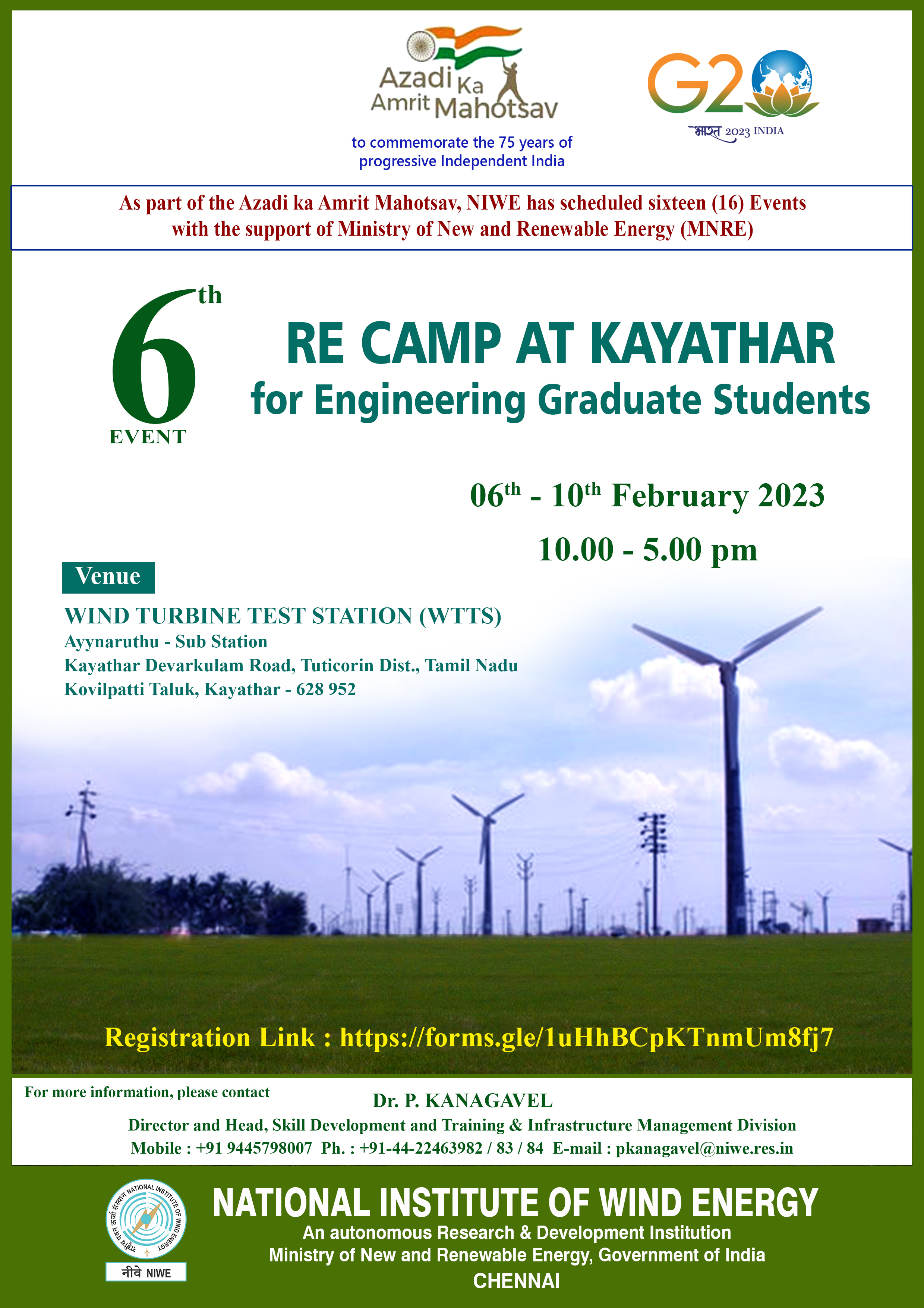 NIWE with the support of MNRE has scheduled sixteen events to commemorate 75 years of progressive Independent India (Azadi Ka Amrit Mahotsav).