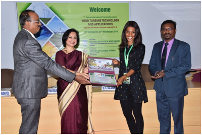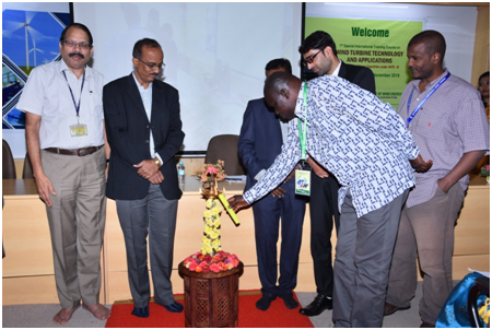 The 7th Special International Training Course on "Wind Turbine Technology and Applications" specially for AFRICAN countries under IAFS-III was successfully conducted by the SDT Division of NIWE, Chennai during 24th October to 21st November 2019, sponsored by Ministry of External Affairs (MEA), Government of India under India Africa Forum Summit – III (IAFS-III). The Course addressed all aspects of Wind Power starting from introduction to wind and its technology, wind resource assessment, installation and commissioning, operation and maintenance aspects of wind farms in a focused manner along with financial and policy aspects. The course was attended by 29 participants from 16 countries, Angola, Chad, DR Congo, Egypt, Kenya, Madagascar, Malawi, Morocco, Mozambique, Niger, Nigeria, Sao-Tome, Sudan, Tanzania, Uganda, Zambia.