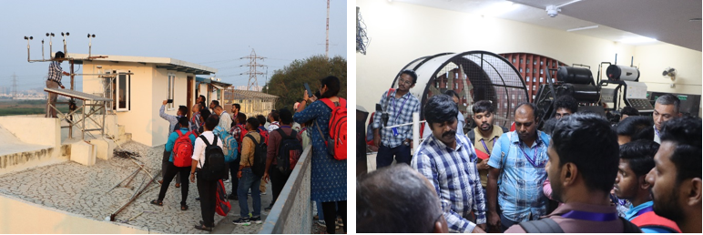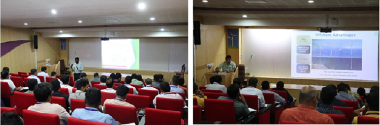 The participants visited the Renewable Energy facilities available in NIWE campus for practical exposure, and had opportunity to understand the Vertical and Horizontal Axis Small Wind Turbines, Wind-Solar Hybrid System, Wind Turbine Nacelle Assembly facility, Meteorological Mast, Biogas Plant and SRRA Station and Wind Energy Training Systems.