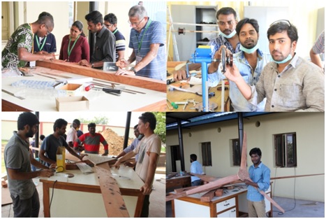 The resource persons for the training course was scientists / engineers of NIWE, Small Wind Turbine Manufacturers, Experts and Engineers, who have contributed significantly for the development of small wind turbine technology. The design, construction and maintenance of small wind turbine part has done by the Mr. Jorge Ayarza, Engineer and Founder of Minvayu, Auroville, Tamil Nadu near Pondicherry with his team who are already engaged in design, construction, supply and providing training for the rural mechanics to build, install and maintain low cost wind turbines with local materials.